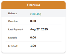 - EFT Amount: Displays any Electronic Fund Transfer amount recorded (e.g., 1.00). A non zero amount indicates, the parent has signed up for EFT withdrawal.
