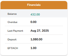- Deposit: Any deposit available. IMPORTANT: The deposit is an amount that a parent pays as per the policies in effect for the facility, and is not used in the calculation of account balances. Therefore, 432.00 shown above could be offset with the deposit amount should a parent not pay on time.