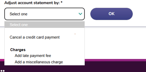 - OK: Apply an adjustment. IMPORTANT: An administrator can apply any number of MANUAL ADJUSTMENTS to an Account Statement.