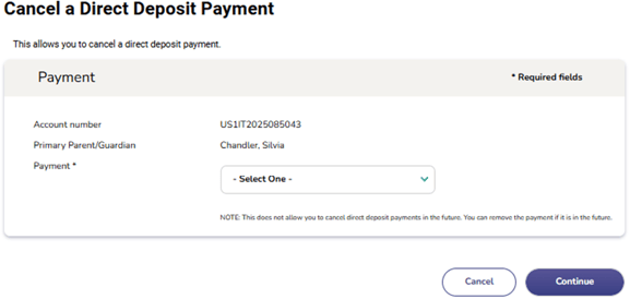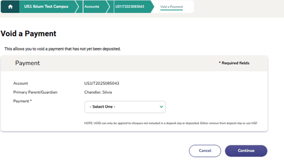 Select this option to cancel a payment that was entered by mistake.- A payment that has not been deposited yet and