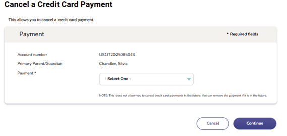 Use this to assign a payment from one account to another (e.g., if the payment was incorrectly applied to the wrong family or child).- A payment that has been deposited or is a payment with a deposit date assigned