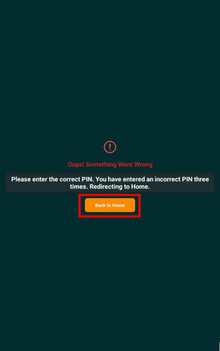 After three attempts of incorrect PIN, it will show an error page where you can navigate back to the homepage for arrival and departure