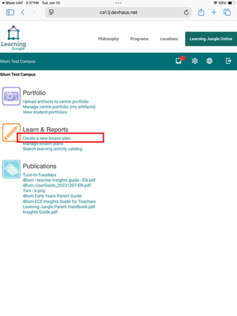 Step 4: Navigating the portal to create a new lesson plan