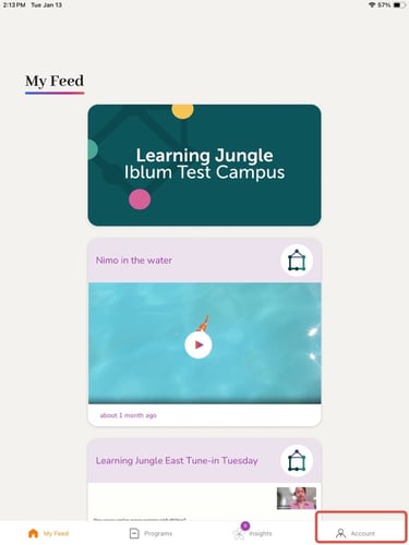 • Click on the Account tab on the bottom right of the screen
