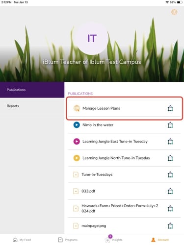 Step 3: Under publications, click on 'Manage Lesson Plans'