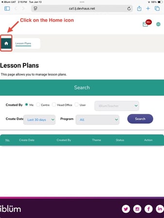 • Click on the Home icon to navigate you to your educator dashboard