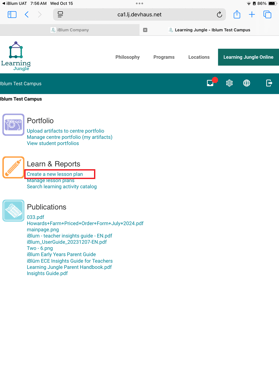 6. Click on Create or Manage lesson plans