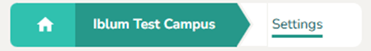 - Breadcrumb (Iblum Test Campus > Settings): Shows your current location in the portal.