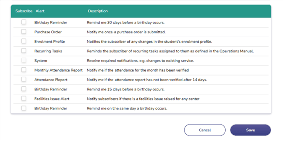 Select or update your preferred alert options as needed.