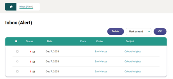 Inbox (Alert) Page – This page displays a list of notifications to which you are subscribed.