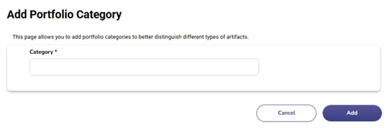 - Enter the Category name and click Add to include it to your portfolio.