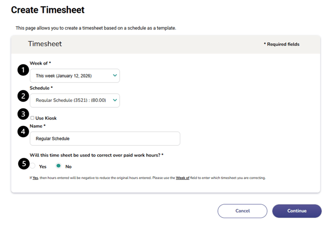 - Schedule* – Choose the schedule that will serve as the template for this timesheet.