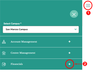 - First access the Financials section by clicking on the hamburger menu item. See image above.