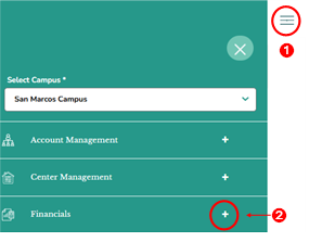 - First access the Financials section by clicking on the hamburger menu item. See image above.