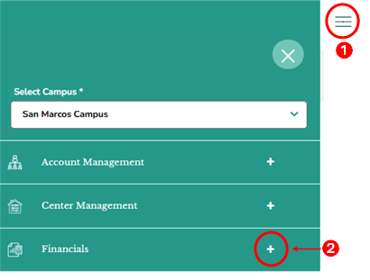- First access the Financials section by clicking on the hamburger menu item. See image above.