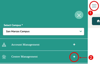 - First access the Center Management section by clicking on the hamburger menu (☰) item. See image above.