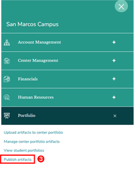 - Then click on “Publish artifacts” link from the Portfolio section. Once you click on this link, you are taken to the Publications page.