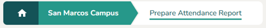 - Breadcrumb (San Marcos Campus > Prepare Attendance Report): Shows your current location in the portal.