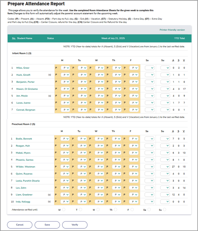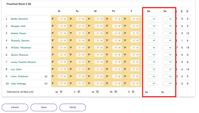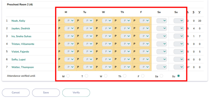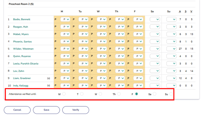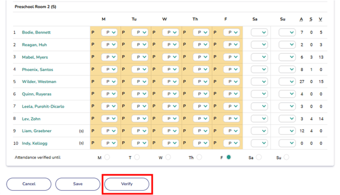 - Once all attendance data has been reviewed and confirmed as accurate, click Verify.