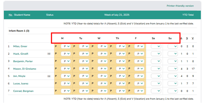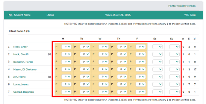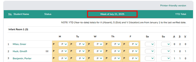 - Select the day up to which you want to verify attendance (e.g., Friday)