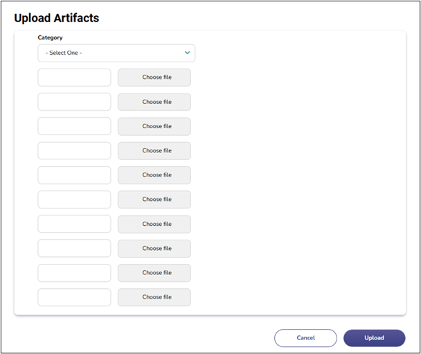 - Page Title: Upload Artifacts – this is not clickable.