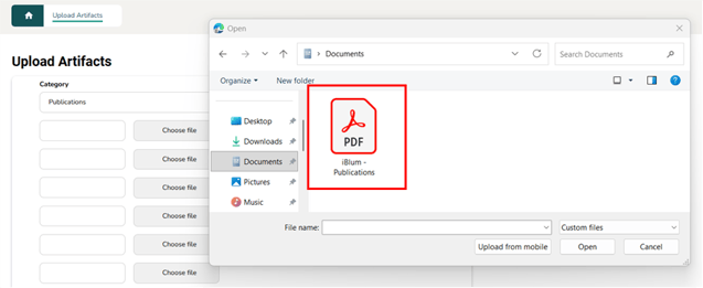 - Select the publication file (e.g., a PDF) you want to upload.