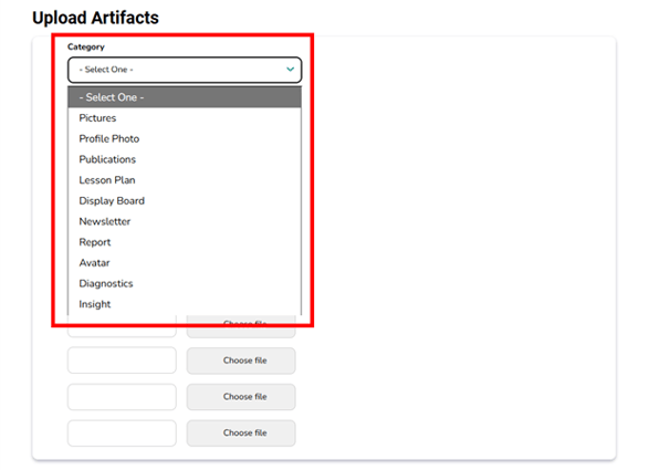 - Then click on “Upload artifacts to center portfolio” link from the Portfolio section. Once you click on this link, you are taken to the Upload Artifacts page.
