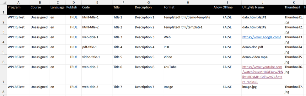 - Edit the Program column to ensure that the content is uploaded to the correct program