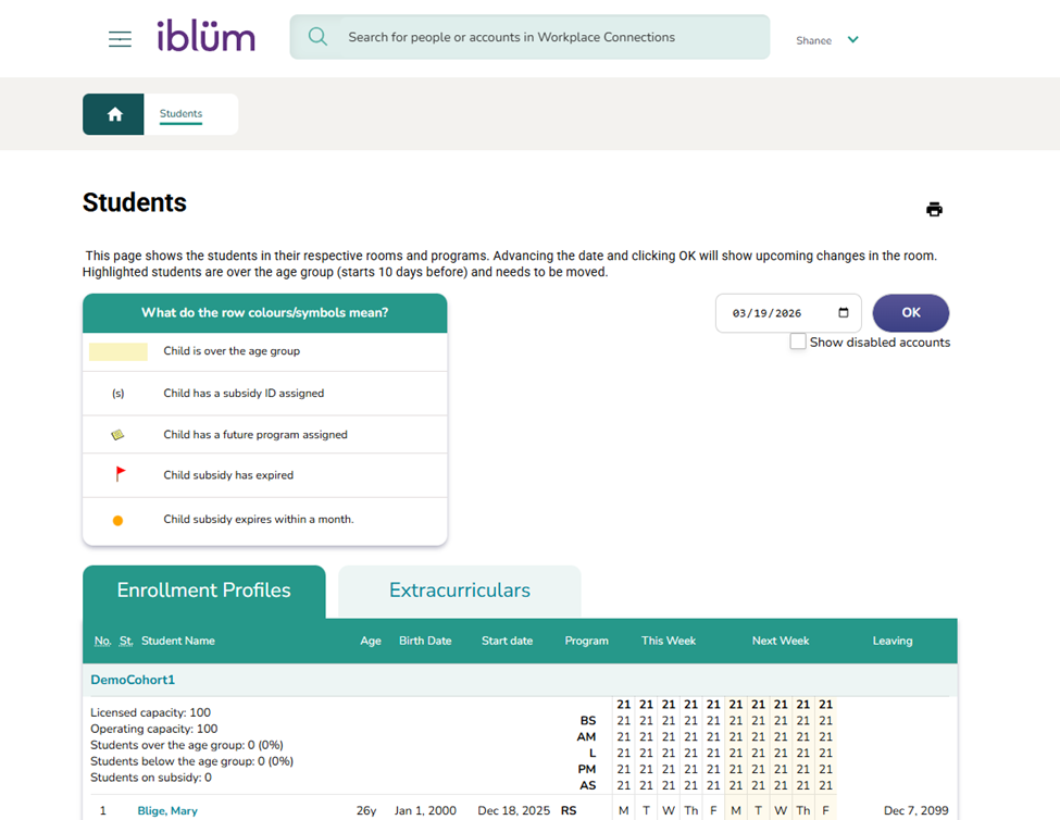 You will be navigated to the student list page: