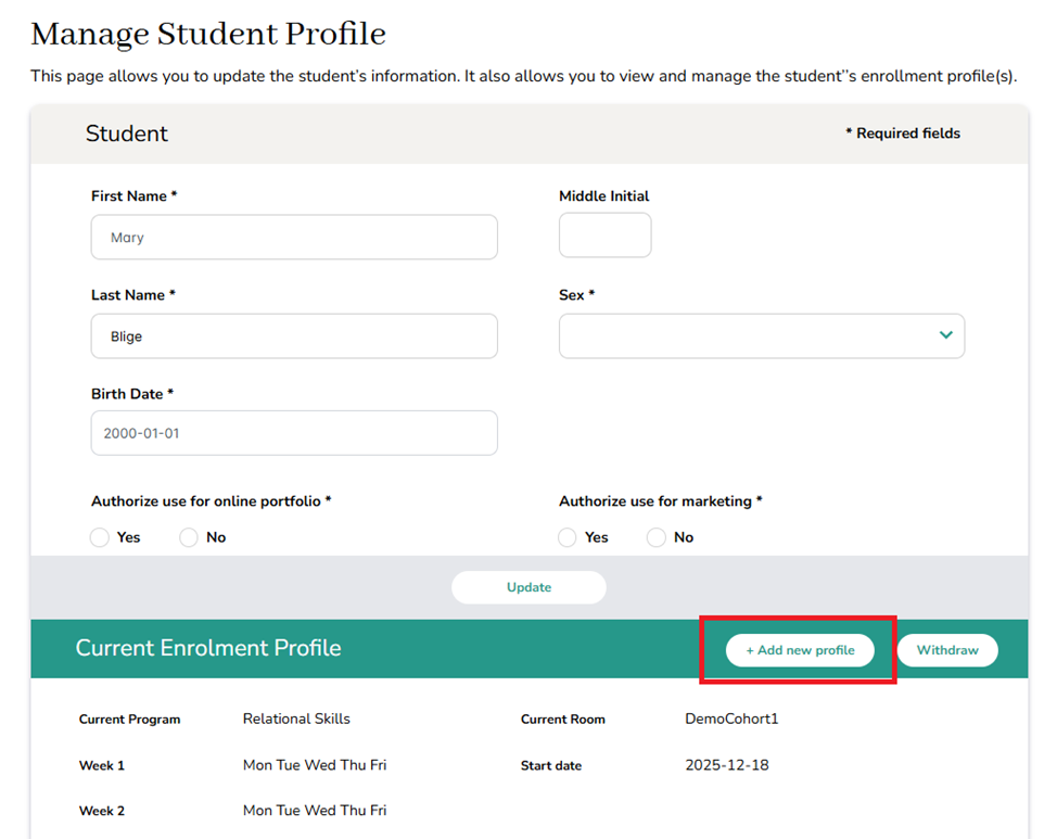 Step 5: Click on the learner’s name and select Enrollment Profile.