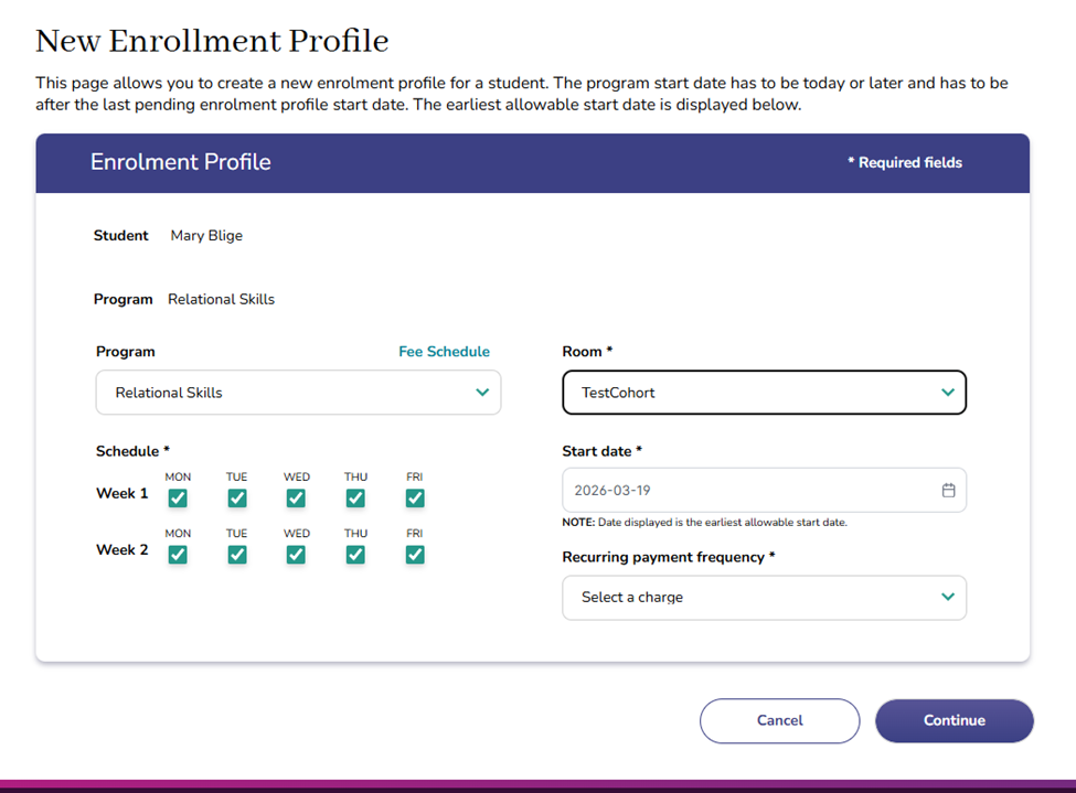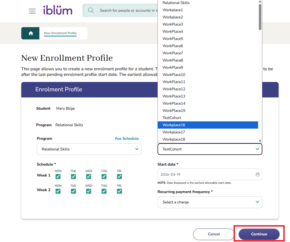 Step 9: Choose the cohort (room) you would like to move the learner into, then click Continue.