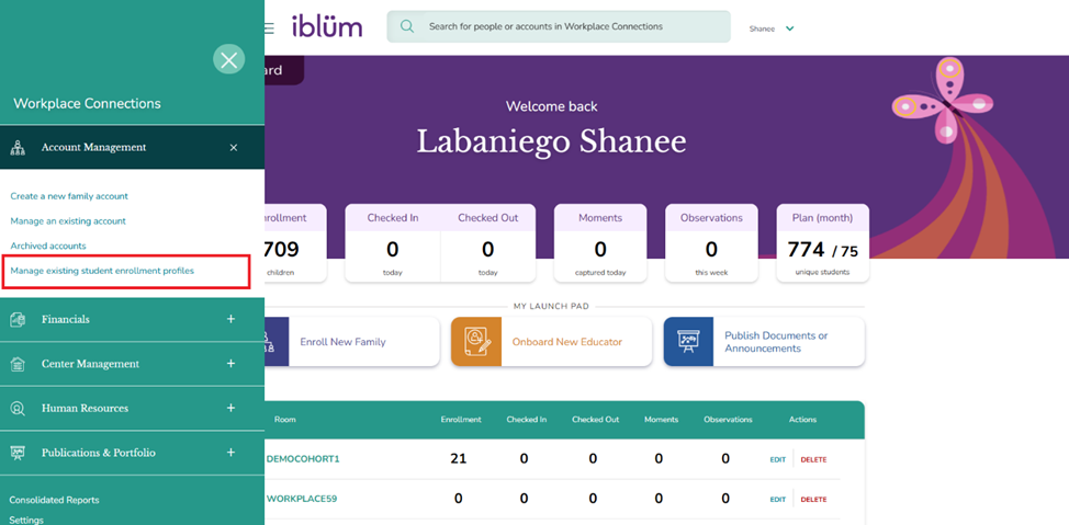 Step 3: Click on Account Management and click on Manage existing student enrollment profile