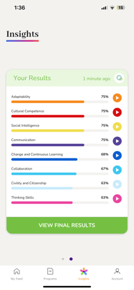 Your Assessment Report (covering 8 skills: Communication, Cultural Competence, Collaboration, Thinking Skills, Adaptability, Social Intelligence, Civility, and Citizenship) is generated.